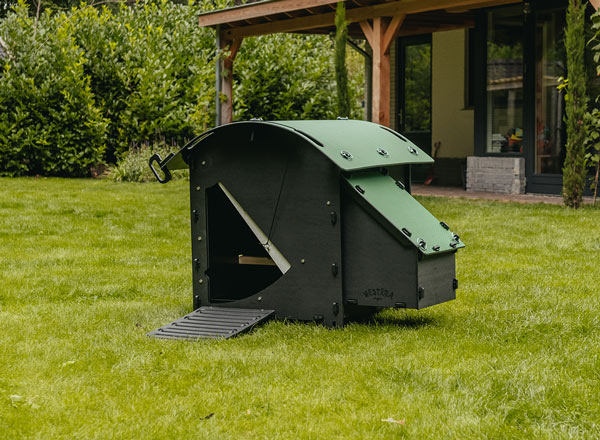 La pulizia di un pollaio Nestera è ancora più veloce con i vassoi per escrementi rimovibili, facilmente accessibili tramite l'ampia porta posteriore del pollaio.