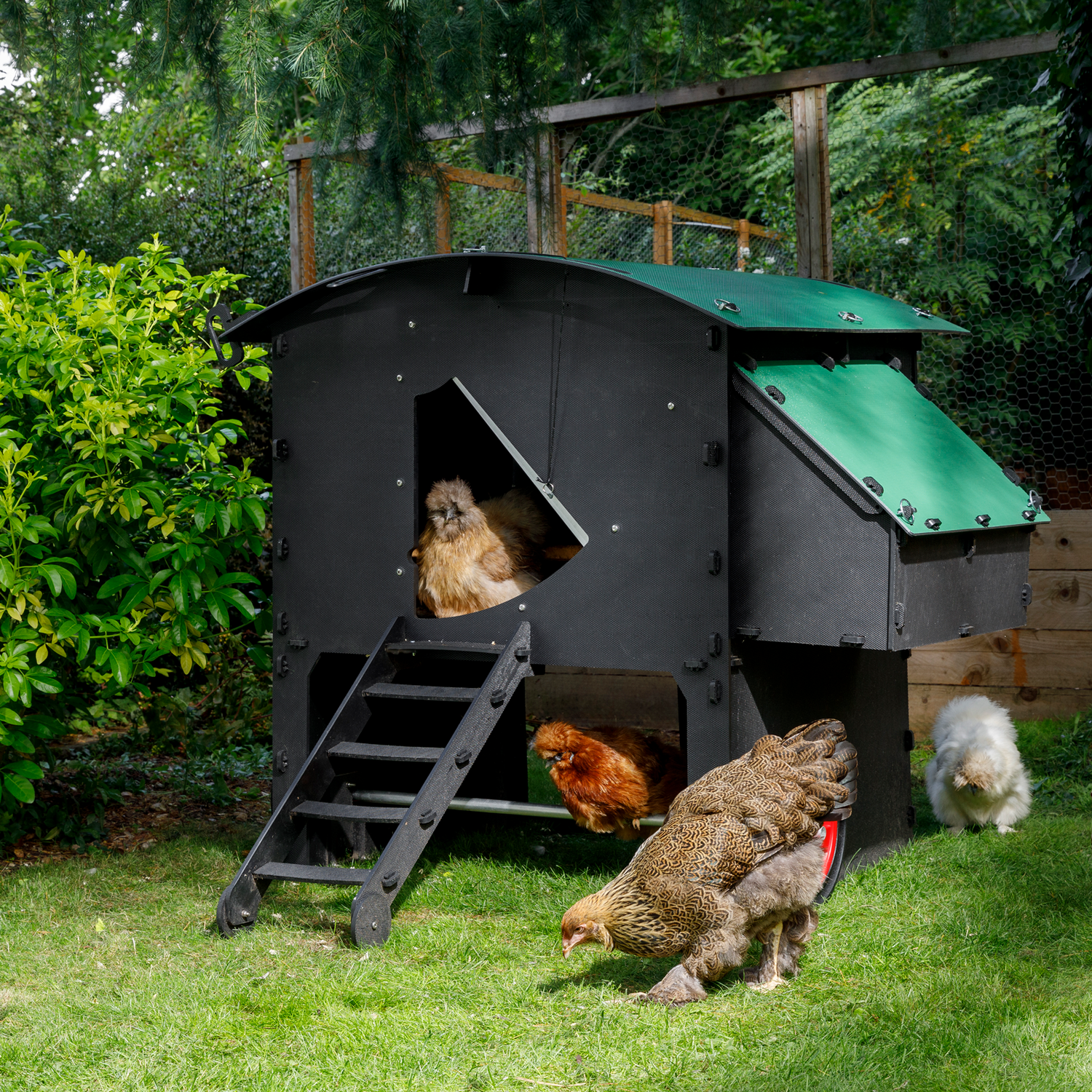 The Large Penthouse Bundle includes: 1x Large Penthouse Chicken Coop + 1x Large Wheelset + 1x Droppings Trays Kit + 1x Penthouse Run